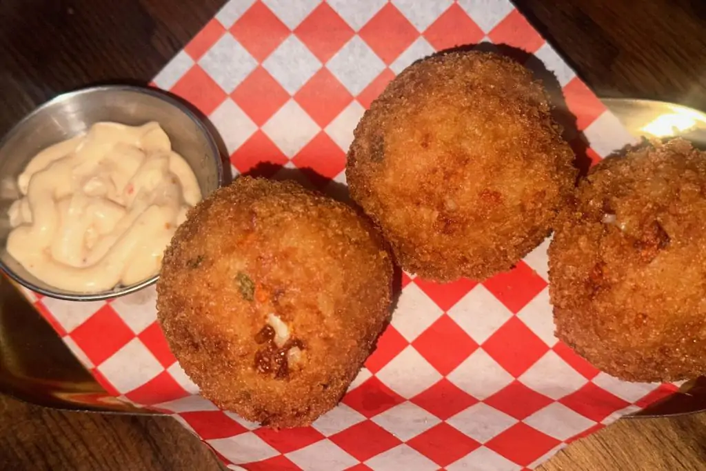 Imagine taking a bite into one of these golden orbs – the crispy exterior gives way to a molten, cheesy center, mingling with the flavors of tender rice and savory sauce. It’s a delightful explosion of tastes and textures in every bite.